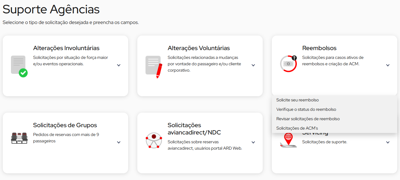 Lembre-se que, antes de processar a solicitação na Aviancatrade, você deve obter a autorização de reembolso da área de Grupos, seguindo o processo atualmente estabelecido.